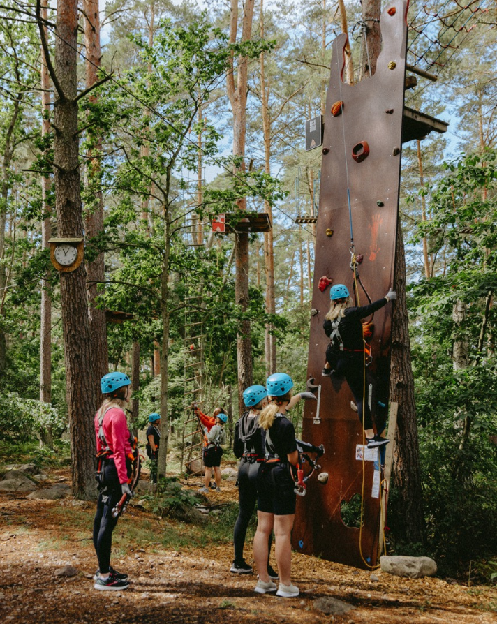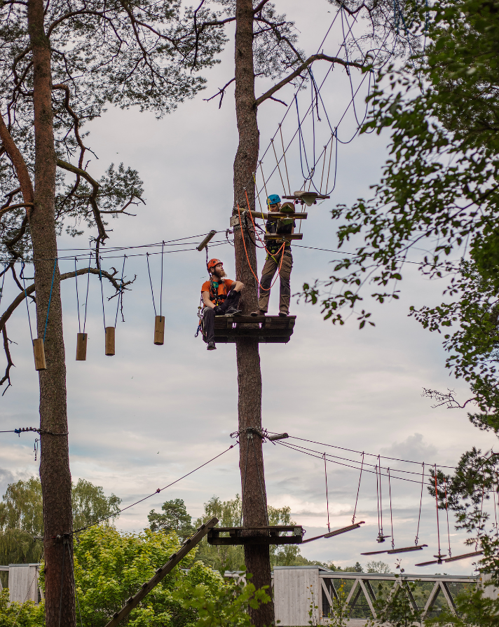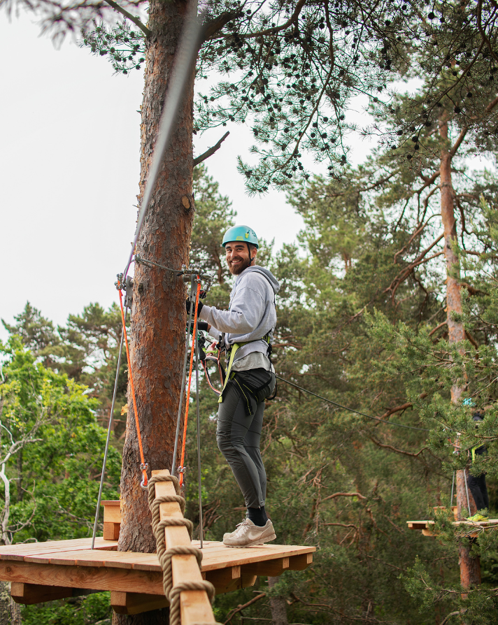 En möhippa eller svensexa hos oss är mer än bara ett firande – det är en aktiv upplevelse där ni får röra er, utmana varandra och ha riktigt kul tillsammans. Efter en gemensam säkerhetsgenomgång ger ni er ut i våra höghöjdsbanor, där alla kan delta utifrån sin egen nivå.