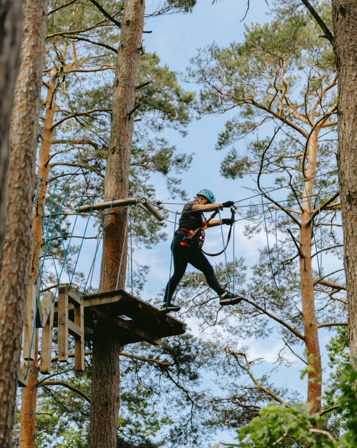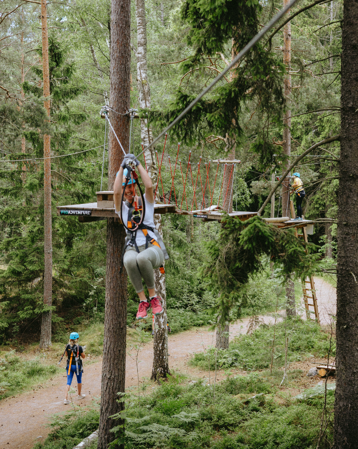 Banorna är uppbyggda i olika svårighetsgrader, vilket gör att både nybörjare och mer erfarna kan vara med. Här väntar balansmoment, repbroar, nät och fartfyllda ziplines som skapar en varierad upplevelse fylld av utmaningar och skratt.