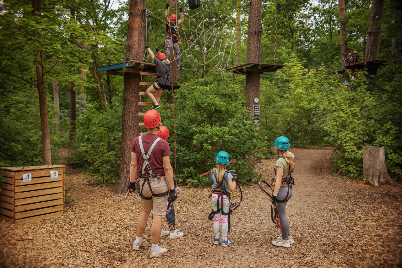 Ta med dig familj och vänner för klättring och ziplines bland trädtopparna!