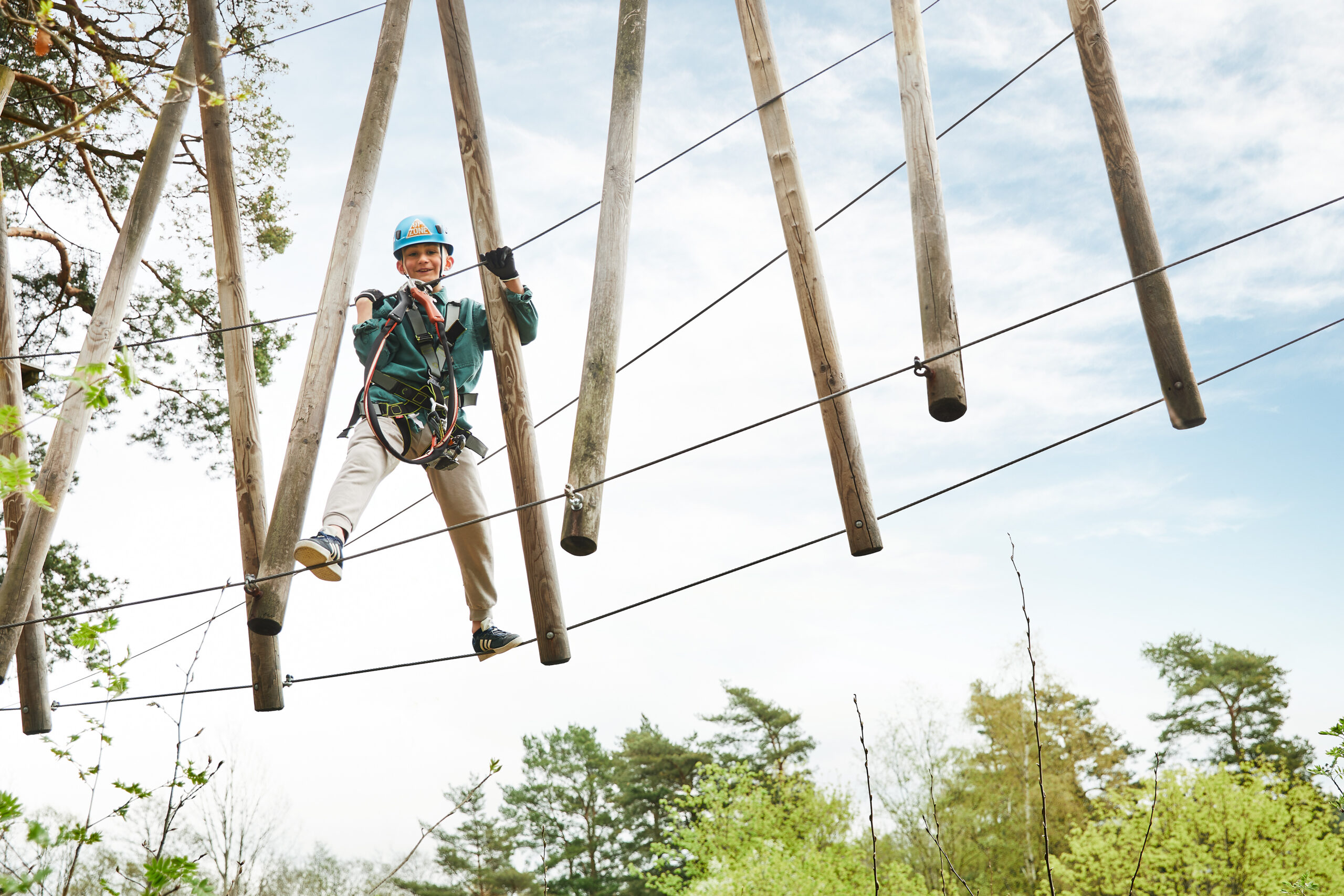 Ta med dig familj och vänner för klättring och ziplines bland trädtopparna!